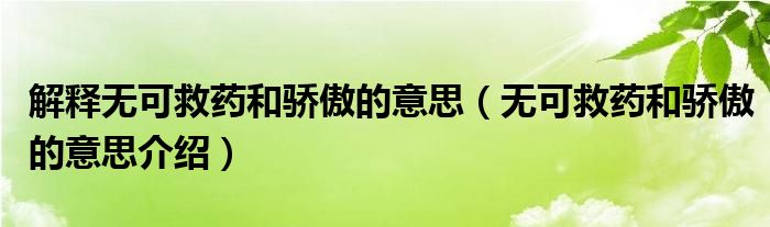大家好,伊人來(lái)為大家解答以上問(wèn)題。解釋無(wú)可救藥和驕傲的意思,無(wú)可救藥和驕傲的意思介紹很多人還不知道,現(xiàn)在讓我們一起來(lái)看看吧!