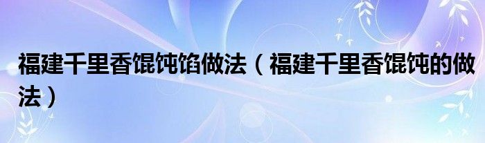 大家好,伊人來為大家解答以上問題。福建千里香餛飩餡做法,福建千里香餛飩的做法很多人還不知道,現(xiàn)在讓我們一起來看看吧!