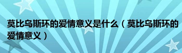 大家好,小生來為大家講解下。莫比烏斯環(huán)的愛情意義是什么,莫比烏斯環(huán)的愛情意義很多人還不知道,現(xiàn)在讓我們一起來看看吧!
