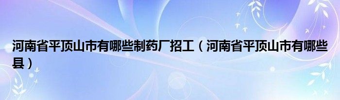 大家好,小生來為大家講解下。河南省平頂山市有哪些制藥廠招工,河南省平頂山市有哪些縣很多人還不知道,現(xiàn)在讓我們一起來看看吧!