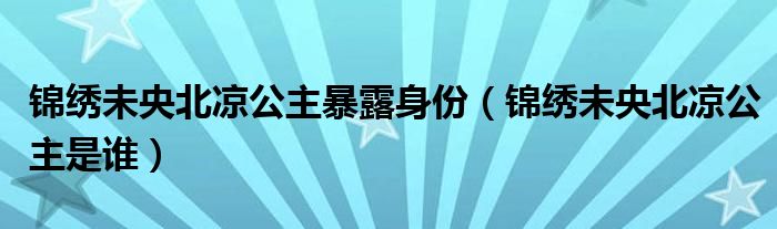 大家好,小生來為大家講解下。錦繡未央北涼公主暴露身份,錦繡未央北涼公主是誰很多人還不知道,現(xiàn)在讓我們一起來看看吧!