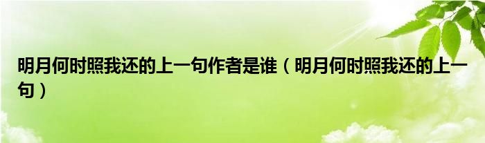 大家好,小生來為大家講解下。明月何時照我還的上一句作者是誰,明月何時照我還的上一句很多人還不知道,現在讓我們一起來看看吧!