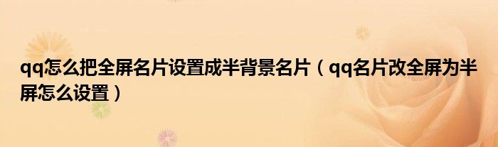 大家好,小生來(lái)為大家講解下。qq怎么把全屏名片設(shè)置成半背景名片,qq名片改全屏為半屏怎么設(shè)置很多人還不知道,現(xiàn)在讓我們一起來(lái)看看吧!