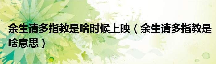 大家好,小生來為大家講解下。余生請多指教是啥時(shí)候上映,余生請多指教是啥意思很多人還不知道,現(xiàn)在讓我們一起來看看吧!