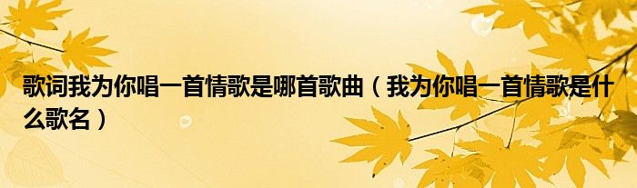 大家好,小生來(lái)為大家講解下。歌詞我為你唱一首情歌是哪首歌曲,我為你唱一首情歌是什么歌名很多人還不知道,現(xiàn)在讓我們一起來(lái)看看吧!