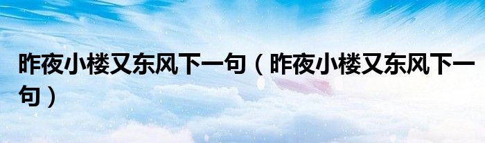 大家好,小生來(lái)為大家講解下。昨夜小樓又東風(fēng)下一句,昨夜小樓又東風(fēng)下一句很多人還不知道,現(xiàn)在讓我們一起來(lái)看看吧!