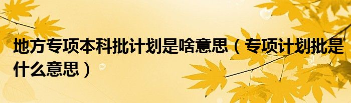 大家好,小生來為大家講解下。地方專項本科批計劃是啥意思,專項計劃批是什么意思很多人還不知道,現(xiàn)在讓我們一起來看看吧!