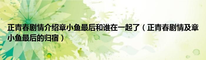 大家好,伊人來(lái)為大家解答以上問(wèn)題。正青春劇情介紹章小魚最后和誰(shuí)在一起了,正青春劇情及章小魚最后的歸宿很多人還不知道,現(xiàn)在讓我們一起來(lái)看看吧!