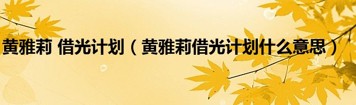 大家好,小生來為大家講解下。黃雅莉 借光計(jì)劃,黃雅莉借光計(jì)劃什么意思很多人還不知道,現(xiàn)在讓我們一起來看看吧!