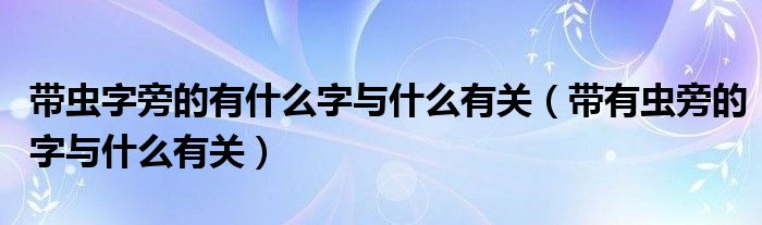 大家好,小生來為大家講解下。帶蟲字旁的有什么字與什么有關(guān),帶有蟲旁的字與什么有關(guān)很多人還不知道,現(xiàn)在讓我們一起來看看吧!