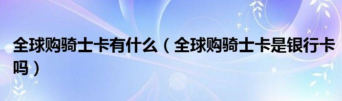 大家好,小生來為大家講解下。全球購騎士卡有什么,全球購騎士卡是銀行卡嗎很多人還不知道,現(xiàn)在讓我們一起來看看吧!