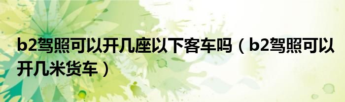 大家好,小生來(lái)為大家講解下。b2駕照可以開(kāi)幾座以下客車(chē)嗎,b2駕照可以開(kāi)幾米貨車(chē)很多人還不知道,現(xiàn)在讓我們一起來(lái)看看吧!