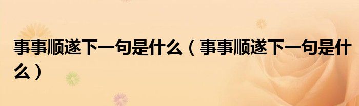 大家好,小生來為大家講解下。事事順?biāo)煜乱痪涫鞘裁?,事事順?biāo)煜乱痪涫鞘裁春芏嗳诉€不知道,現(xiàn)在讓我們一起來看看吧!