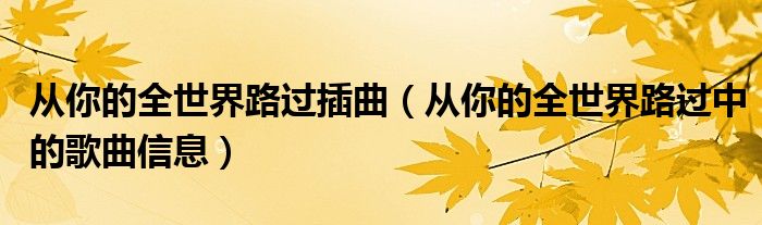 大家好,伊人來為大家解答以上問題。從你的全世界路過插曲,從你的全世界路過中的歌曲信息很多人還不知道,現(xiàn)在讓我們一起來看看吧!