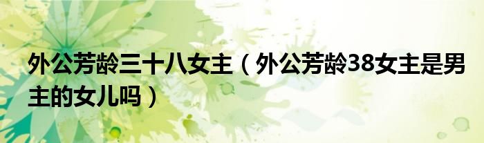 大家好,小生來為大家講解下。外公芳齡三十八女主,外公芳齡38女主是男主的女兒嗎很多人還不知道,現(xiàn)在讓我們一起來看看吧!