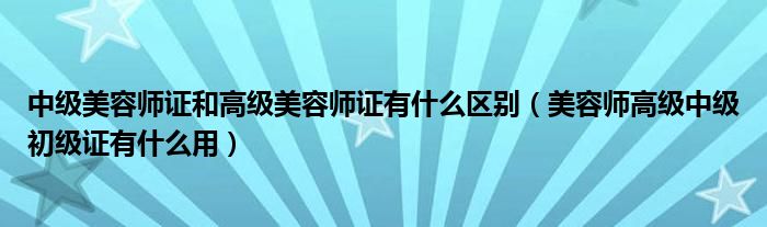 大家好,小生來為大家講解下。中級美容師證和高級美容師證有什么區(qū)別,美容師高級中級初級證有什么用很多人還不知道,現(xiàn)在讓我們一起來看看吧!
