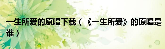 大家好,小生來為大家講解下。一生所愛的原唱下載,《一生所愛》的原唱是誰很多人還不知道,現(xiàn)在讓我們一起來看看吧!