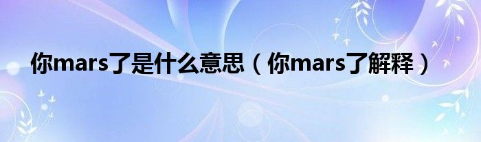 大家好,伊人來為大家解答以上問題。你mars了是什么意思,你mars了解釋很多人還不知道,現(xiàn)在讓我們一起來看看吧!