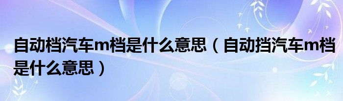 大家好,小生來(lái)為大家講解下。自動(dòng)檔汽車(chē)m檔是什么意思,自動(dòng)擋汽車(chē)m檔是什么意思很多人還不知道,現(xiàn)在讓我們一起來(lái)看看吧!