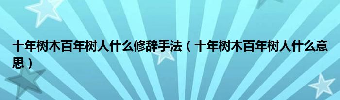 大家好,小生來(lái)為大家講解下。十年樹木百年樹人什么修辭手法,十年樹木百年樹人什么意思很多人還不知道,現(xiàn)在讓我們一起來(lái)看看吧!