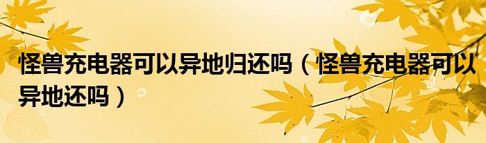 大家好,小生來為大家講解下。怪獸充電器可以異地歸還嗎,怪獸充電器可以異地還嗎很多人還不知道,現(xiàn)在讓我們一起來看看吧!
