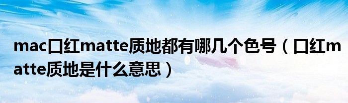 大家好,小生來為大家講解下。mac口紅matte質(zhì)地都有哪幾個色號,口紅matte質(zhì)地是什么意思很多人還不知道,現(xiàn)在讓我們一起來看看吧!
