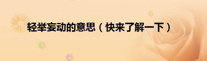 大家好,伊人來為大家解答以上問題。輕舉妄動的意思,快來了解一下很多人還不知道,現(xiàn)在讓我們一起來看看吧!