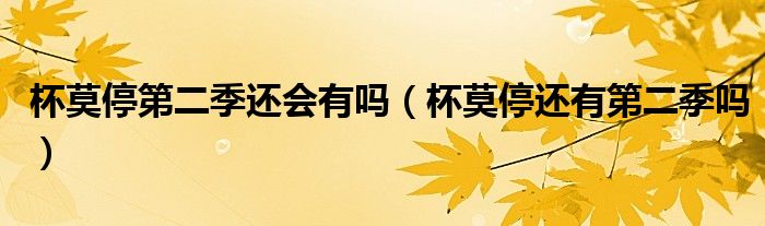 大家好,小生來為大家講解下。杯莫停第二季還會(huì)有嗎,杯莫停還有第二季嗎很多人還不知道,現(xiàn)在讓我們一起來看看吧!