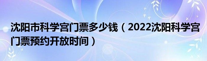 大家好,小生來為大家講解下。沈陽市科學(xué)宮門票多少錢,2022沈陽科學(xué)宮門票預(yù)約開放時間很多人還不知道,現(xiàn)在讓我們一起來看看吧!