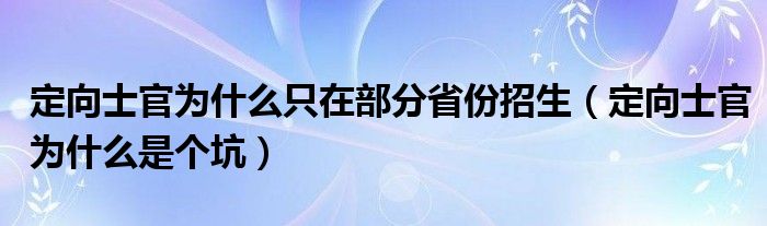 大家好,小生來為大家講解下。定向士官為什么只在部分省份招生,定向士官為什么是個坑很多人還不知道,現(xiàn)在讓我們一起來看看吧!