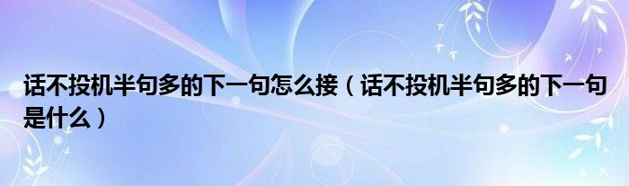 大家好,小生來為大家講解下。話不投機半句多的下一句怎么接,話不投機半句多的下一句是什么很多人還不知道,現(xiàn)在讓我們一起來看看吧!