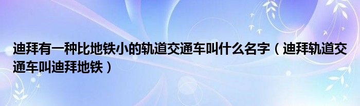 大家好,伊人來為大家解答以上問題。迪拜有一種比地鐵小的軌道交通車叫什么名字,迪拜軌道交通車叫迪拜地鐵很多人還不知道,現(xiàn)在讓我們一起來看看吧!
