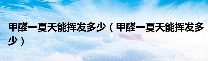大家好,小生來為大家講解下。甲醛一夏天能揮發(fā)多少,甲醛一夏天能揮發(fā)多少很多人還不知道,現(xiàn)在讓我們一起來看看吧!