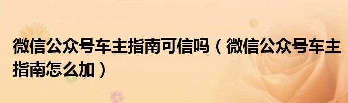 大家好,小生來(lái)為大家講解下。微信公眾號(hào)車主指南可信嗎,微信公眾號(hào)車主指南怎么加很多人還不知道,現(xiàn)在讓我們一起來(lái)看看吧!