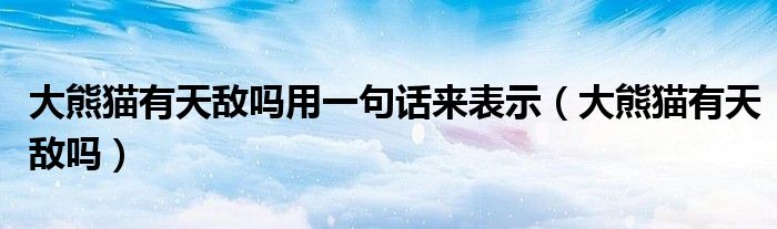 大家好,小生來為大家講解下。大熊貓有天敵嗎用一句話來表示,大熊貓有天敵嗎很多人還不知道,現(xiàn)在讓我們一起來看看吧!