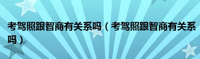大家好,小生來為大家講解下??捡{照跟智商有關(guān)系嗎,考駕照跟智商有關(guān)系嗎很多人還不知道,現(xiàn)在讓我們一起來看看吧!