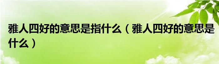 大家好,小生來為大家講解下。雅人四好的意思是指什么,雅人四好的意思是什么很多人還不知道,現(xiàn)在讓我們一起來看看吧!
