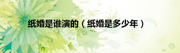 大家好,小生來為大家講解下。紙婚是誰演的,紙婚是多少年很多人還不知道,現(xiàn)在讓我們一起來看看吧!