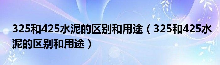大家好,小生來為大家講解下。325和425水泥的區(qū)別和用途,325和425水泥的區(qū)別和用途很多人還不知道,現(xiàn)在讓我們一起來看看吧!