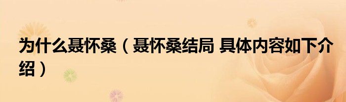 大家好,小生來為大家講解下。為什么聶懷桑,聶懷桑結(jié)局 具體內(nèi)容如下介紹很多人還不知道,現(xiàn)在讓我們一起來看看吧!