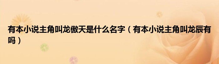 大家好,小生來為大家講解下。有本小說主角叫龍傲天是什么名字,有本小說主角叫龍辰有嗎很多人還不知道,現(xiàn)在讓我們一起來看看吧!