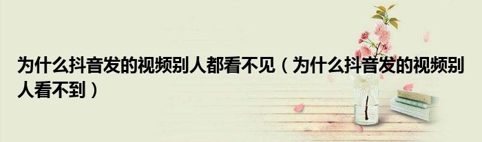 大家好,小生來為大家講解下。為什么抖音發(fā)的視頻別人都看不見,為什么抖音發(fā)的視頻別人看不到很多人還不知道,現(xiàn)在讓我們一起來看看吧!