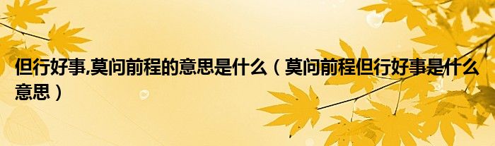 大家好,小生來為大家講解下。但行好事,莫問前程的意思是什么,莫問前程但行好事是什么意思很多人還不知道,現(xiàn)在讓我們一起來看看吧!