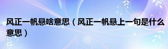 大家好,小生來為大家講解下。風正一帆懸啥意思,風正一帆懸上一句是什么意思很多人還不知道,現(xiàn)在讓我們一起來看看吧!