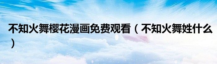 大家好,小生來為大家講解下。不知火舞櫻花漫畫免費觀看,不知火舞姓什么很多人還不知道,現(xiàn)在讓我們一起來看看吧!