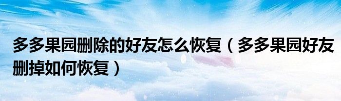 大家好,小生來為大家講解下。多多果園刪除的好友怎么恢復(fù),多多果園好友刪掉如何恢復(fù)很多人還不知道,現(xiàn)在讓我們一起來看看吧!
