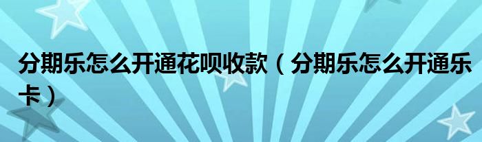 大家好,小生來為大家講解下。分期樂怎么開通花唄收款,分期樂怎么開通樂卡很多人還不知道,現(xiàn)在讓我們一起來看看吧!