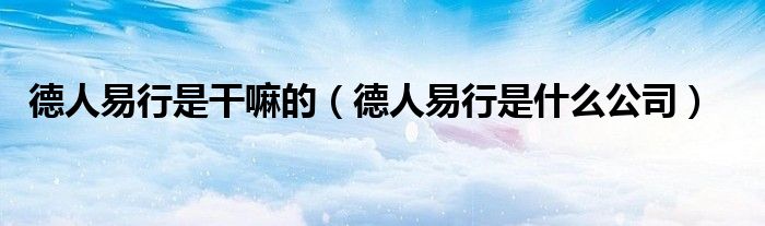 大家好,小生來為大家講解下。德人易行是干嘛的,德人易行是什么公司很多人還不知道,現(xiàn)在讓我們一起來看看吧!