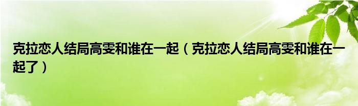 大家好,小生來為大家講解下??死瓚偃私Y(jié)局高雯和誰在一起,克拉戀人結(jié)局高雯和誰在一起了很多人還不知道,現(xiàn)在讓我們一起來看看吧!