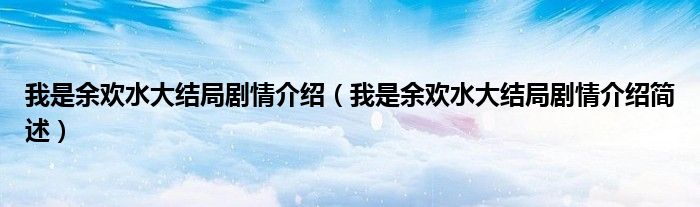 大家好,伊人來為大家解答以上問題。我是余歡水大結(jié)局劇情介紹,我是余歡水大結(jié)局劇情介紹簡(jiǎn)述很多人還不知道,現(xiàn)在讓我們一起來看看吧!